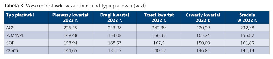Średnia stawka godzinowa oferowana lekarzom w 2022 r. wyniosła 178,86 zł brutto, w tym: