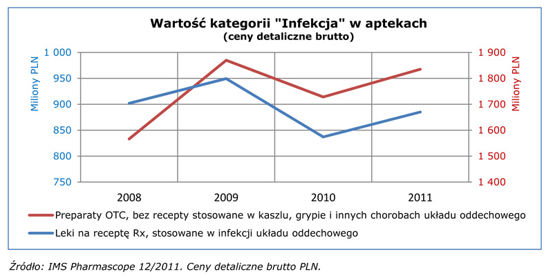 Rok 2011 był drugim z rzędu, gdzie nie wstąpiła znacząca infekcja, czy jak to miało miejsce w 2009 roku pandemia grypy, która stymulowałaby dodatkowo wzrost wartości sprzedanychmedykamentów.