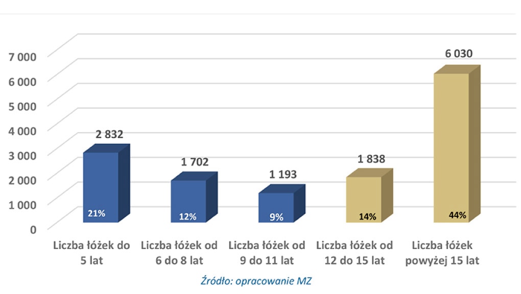 – łóżek w wieku powyżej 15 lat jest niemal 45 proc. i kwalifikują się one do pilnej wymiany,