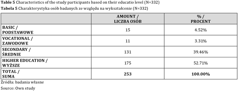 - 175 badanych (52,71 proc.) wykształcenie wyższe.