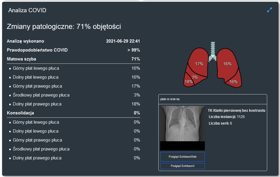 COVID AI – bo tak się nazywa rozwiązanie – jest przeznaczone dla lekarzy radiologów oraz klinicystów. Wbrew temu, co może sugerować nazwa, nie jest wykorzystywane wyłącznie do diagnostyki pacjentów z podejrzeniem SARS-CoV-2 i ich późniejszego leczenia.