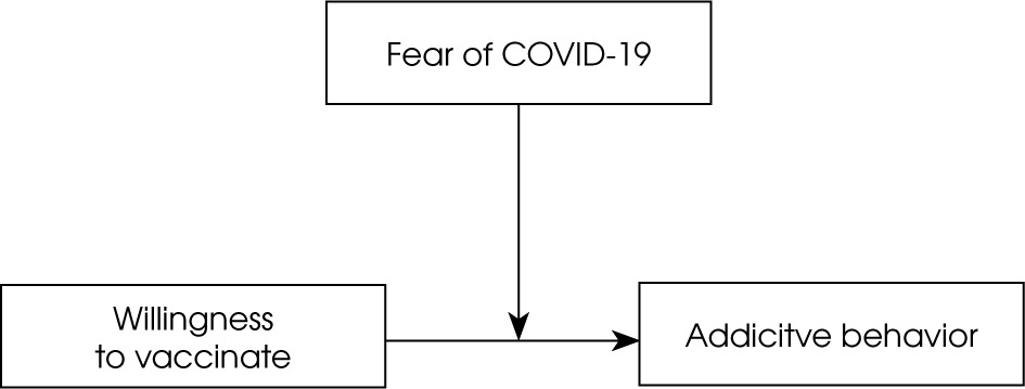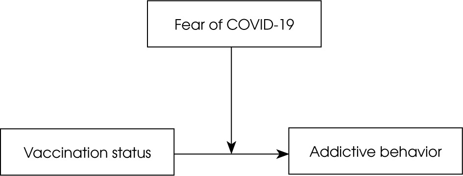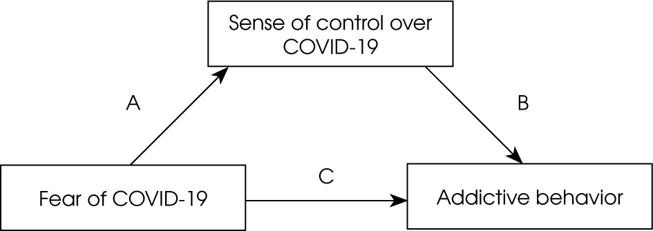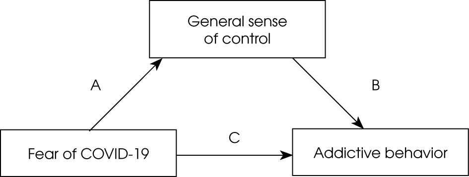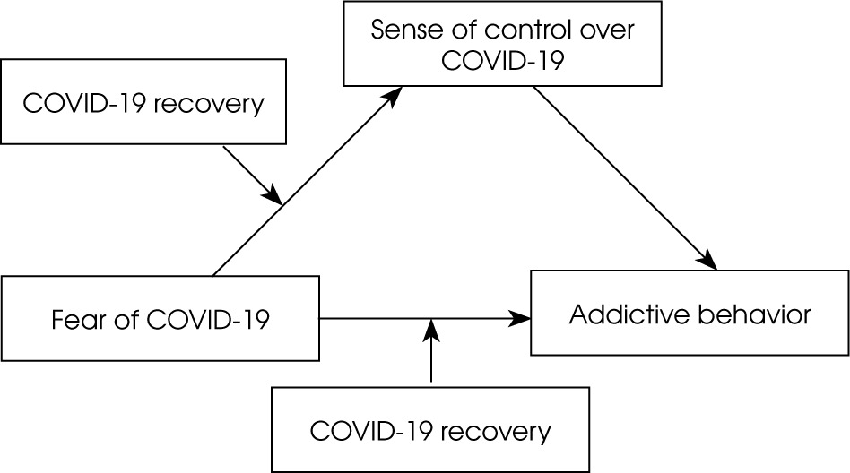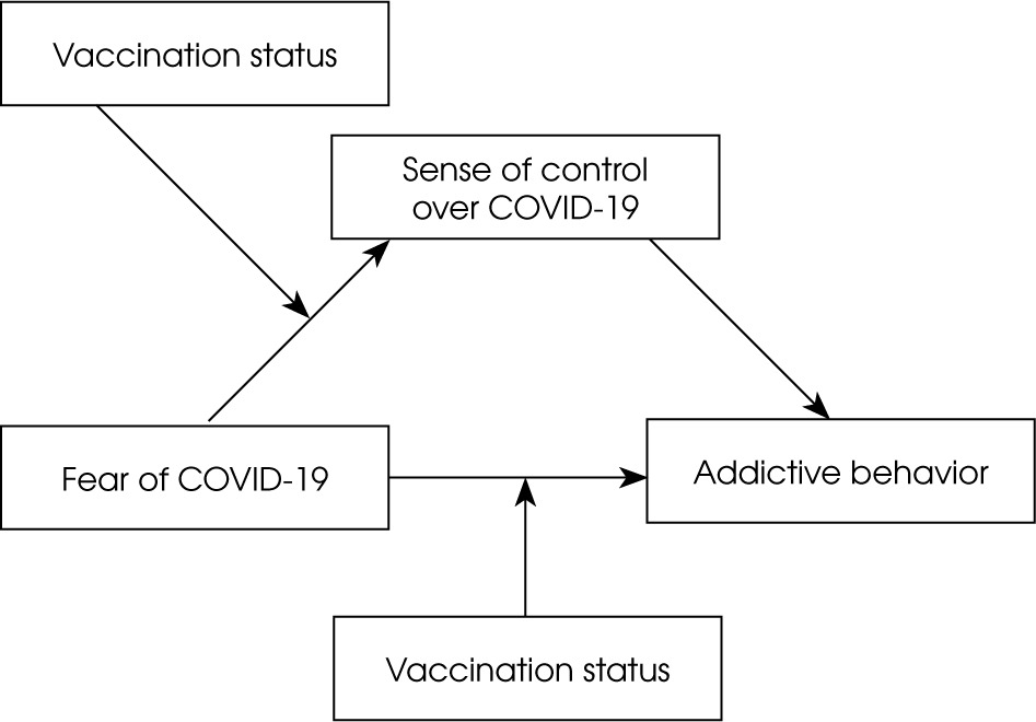 We hypothesized that fear of COVID-19 might be a potential predictor of engagement in addictive behaviors. Moreover, a low general sense of control and low sense of control over COVID-19 could mediate the relationship between fear of COVID-19 and addictive behaviors. Furthermore, attitude to vaccination, vaccination status, and earlier recovery from COVID-19 could potentially moderate the relationship between fear of COVID-19 and a sense of control over it.