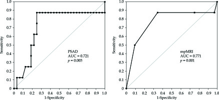 Results of ROC analysis for mpMRI and PSAD