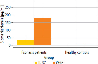 Statistical comparison of IL-37 and VEGF levels between psoriasis patients and healthy controls