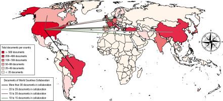 In terms of the absolute number of documents, the United States has the highest number of documents with 837, followed by the People’s Republic of China with 391 and Italy with 318. It is worth mentioning that these documents may have international collaboration. In this regard, there are over 30 documents in collaboration between the United States and Brazil, as well as between the United States and Italy; over 20 documents in collaboration between the United States and the United Kingdom, and also between the United States and the People’s Republic of China (Fig. 3).