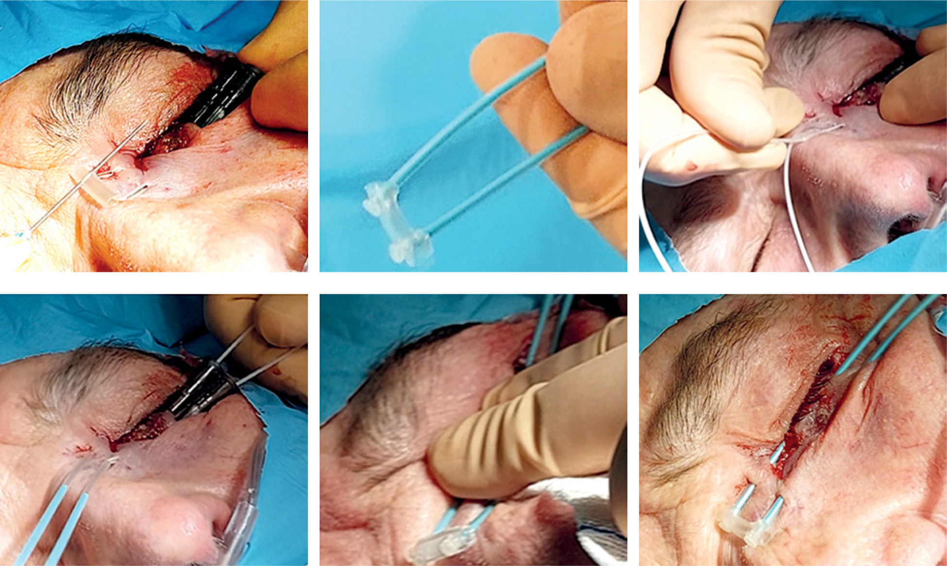 The procedure is short and simple: one to three parallel plastic tubes are inserted horizontally to cover the tumor or surgical scar. Local anesthesia with lidocaine or truncal anesthesia with Ultracaine™ injected into the infra-orbital nerve is required (Figure 1). General anesthesia is not needed as well as antibiotics administration. Antibiotic eye drops, corticosteroids drops, or ointment are applied to the eye to reduce irritative symptoms.