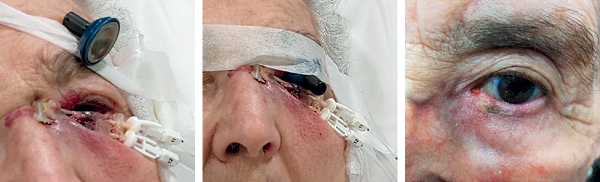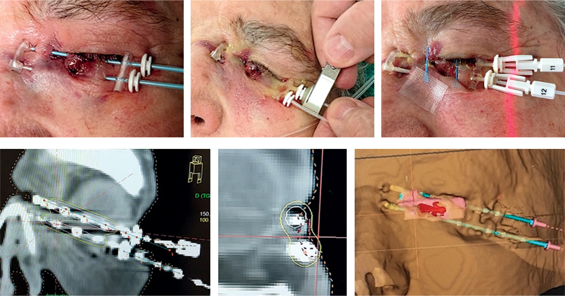 In more extensive cases involving the inner corner of the eye, BT can also cover the area, but it is advisable to leave a catheter in the tear duct by the ophthalmologist for several weeks to avoid stenosis with permanent epiphora. The upper eyelid is a more complex area, but BT is also possible on a case-by-case basis. Good results have been published in advanced eyelid tumors with involvement of periocular tissues using multiple plastic tubes [21].