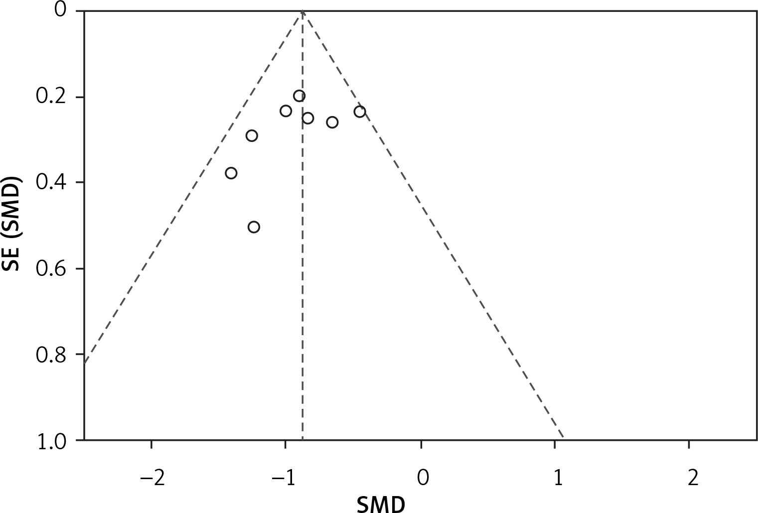This meta-analysis was conducted in accordance with the recommendations of the Cochrane Library and PRISMA guidelines [8]. Statistical analyses of the data were conducted using the RewMan 5.3 software. Two classification variables were expressed by odds ratio (OR) and 95% confidence interval (CI). Continuous variables were expressed by standardized mean difference (SMD) and 95% CI. According to I2 value, the heterogeneity between different studies is low when tested with the fixed-effect model, I2 < 50%; I2 ≥ 50% suggests that the heterogeneity between studies is high. The causes of heterogeneity were analyzed, and the pooled estimates were calculated using random-effects models to take into account potential inter-study heterogeneity and to adopt a more conservative approach [6]. The obvious clinical heterogeneity was treated by subgroup analysis, sensitivity analysis, or descriptive analysis. Statistical significance was considered when p-values < 0.05. A funnel chart was used to evaluate the publication bias, and the biased funnel chart is shown and explained in this paper.