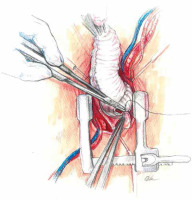 For the first time, an operation of this type was performed and described by Tirone David in 1995. The procedure was performed by total sternotomy [4]. This technique has undergone several important modifications in recent years leading, among other advances, to the minimization of accesses. The most important part of the root reimplantation procedure is to create a new aortic root and reimplant the patient’s own valve onto it. The neo-root is created with the Dacron vascular graft.