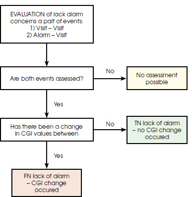 fn – no alert and decision evaluated as incorrect (mood change occurred since previous clinical evaluation of the patient).