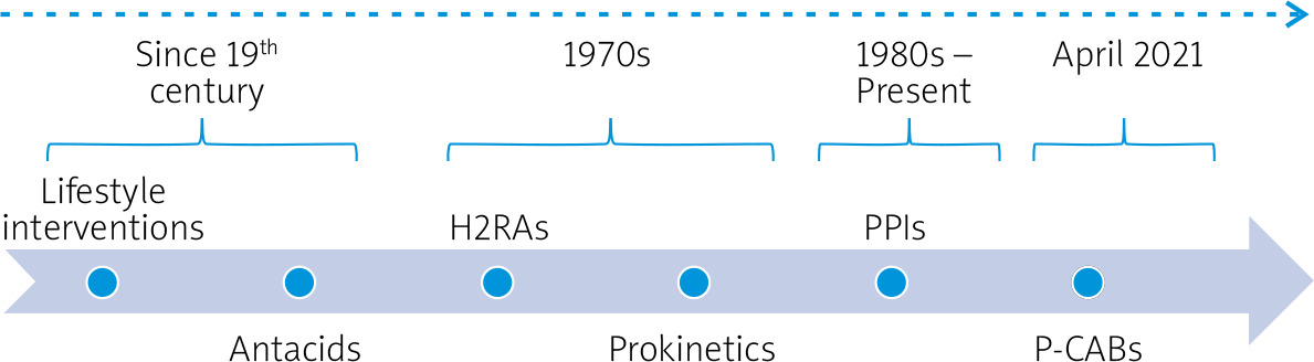 H2RAs – histamine H2-receptor antagonists, P-CABs – potassium-competitive acid blockers, PPI – proton pump inhibitors.