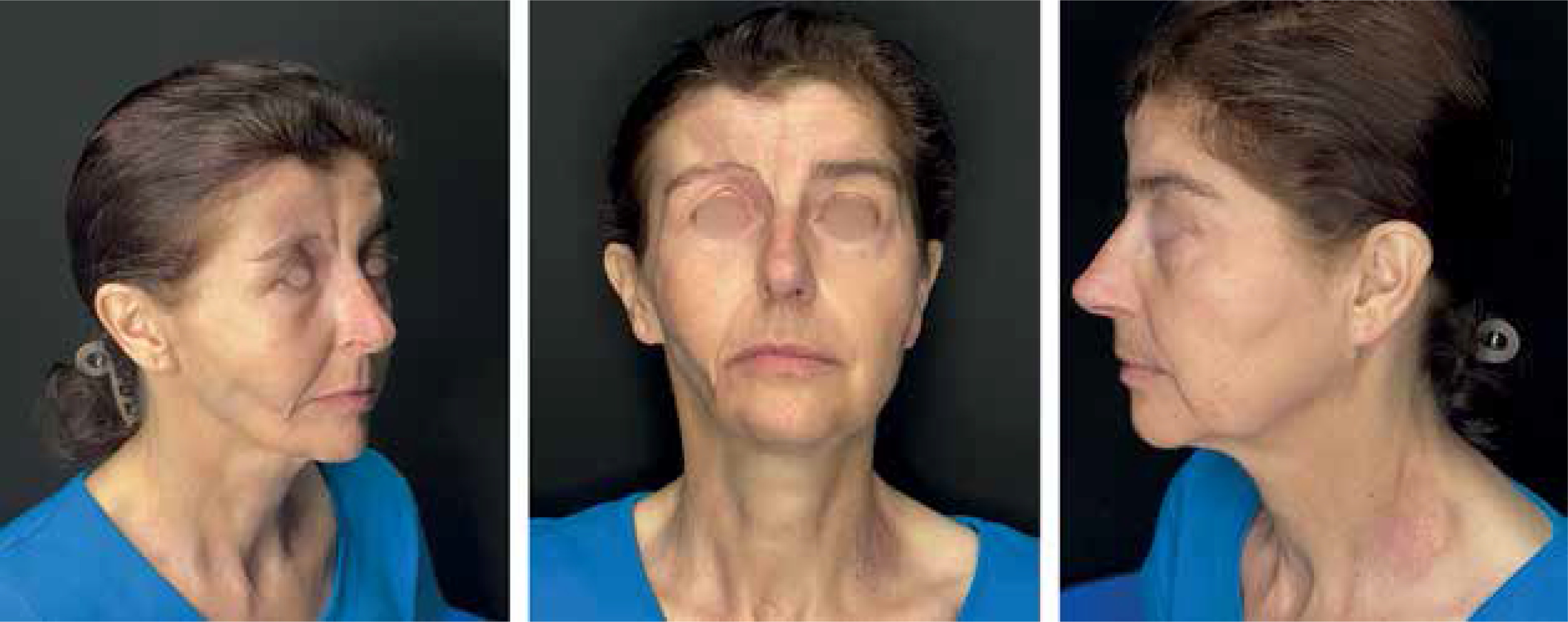 The optometric examination revealed full best-corrected visual acuity. Intraocular pressure in both eyes was within normal limits. We did not observe lagophthalmos.