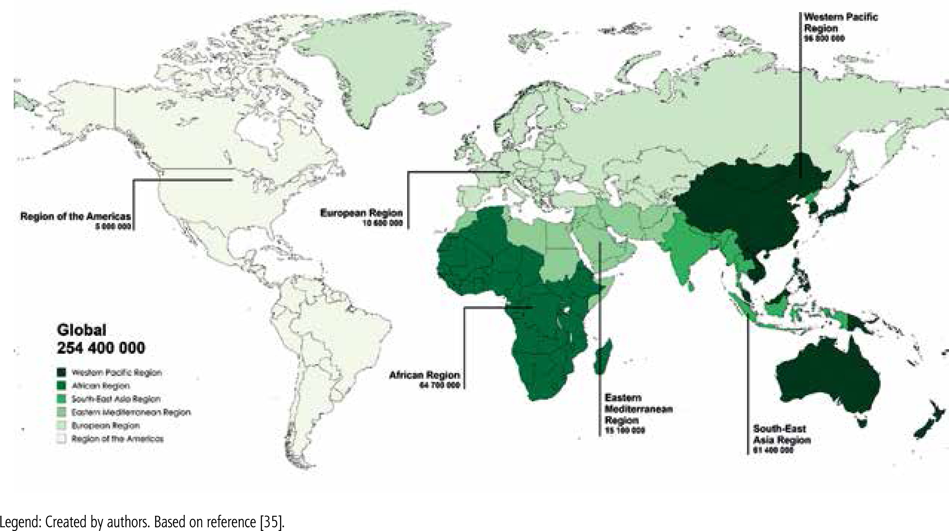 According to a WHO report in 2022, about 254 million people worldwide are chronically infected with HBV, with 1.2 million new infections recorded each year (Fig. 4) [35]. Chronic hepatitis B (CHB) is responsible for about 1.1 million deaths each year, mainly from cirrhosis and HCC [35]. Hepatic steatosis is a common histopathological feature observed in patients with CHB, with a prevalence of 14% to 70%, depending mostly on differences in study populations, diagnostic methods, grading criteria, and genetic or ethnic factors [36]. However, there is no direct evidence to suggest that chronic HBV infection itself increases the risk of hepatic steatosis. The results of available studies indicate that the incidence of hepatic steatosis in patients with CHB is comparable to that in the general population. A recent meta-analysis involving nearly 29 000 patients with CHB found that the incidence of hepatic steatosis was 32.8% (95% CI: 28.9-37.0), which closely mirrors that in the general population [37]. Another meta-analysis, which included 4,100 HBV-infected patients, found an overall SLD prevalence of 29.6% [38], which is consistent with patterns observed in the general population. These findings suggest that hepatic steatosis in patients with CHB is mainly due to metabolic factors rather than HBV infection itself. Notably, several studies have reported an inverse relationship between HBV DNA levels and hepatic steatosis, indicating a protective effect of HBV infection on hepatic steatosis [39]. In patients with CHB and concomitant SLD, a progressive decrease in median HBV DNA levels was observed as the severity of steatosis increased. Interestingly, higher degrees of steatosis were independently associated with lower serum HBV DNA levels, suggesting that steatosis may have a suppressive effect on HBV replication [40].