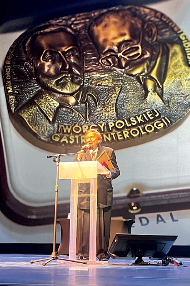 During the ceremony, Medals of Honour of the Polish Society of Gastroenterology were presented to distinguished figures whose achievements have profoundly influenced the development of gastroenterology in Poland and beyond. Among the recipients were Professors Jan Długosz and Maciej Gonciarz, whose distinguished academic career and mentorship have left an enduring mark on Polish clinical medicine.