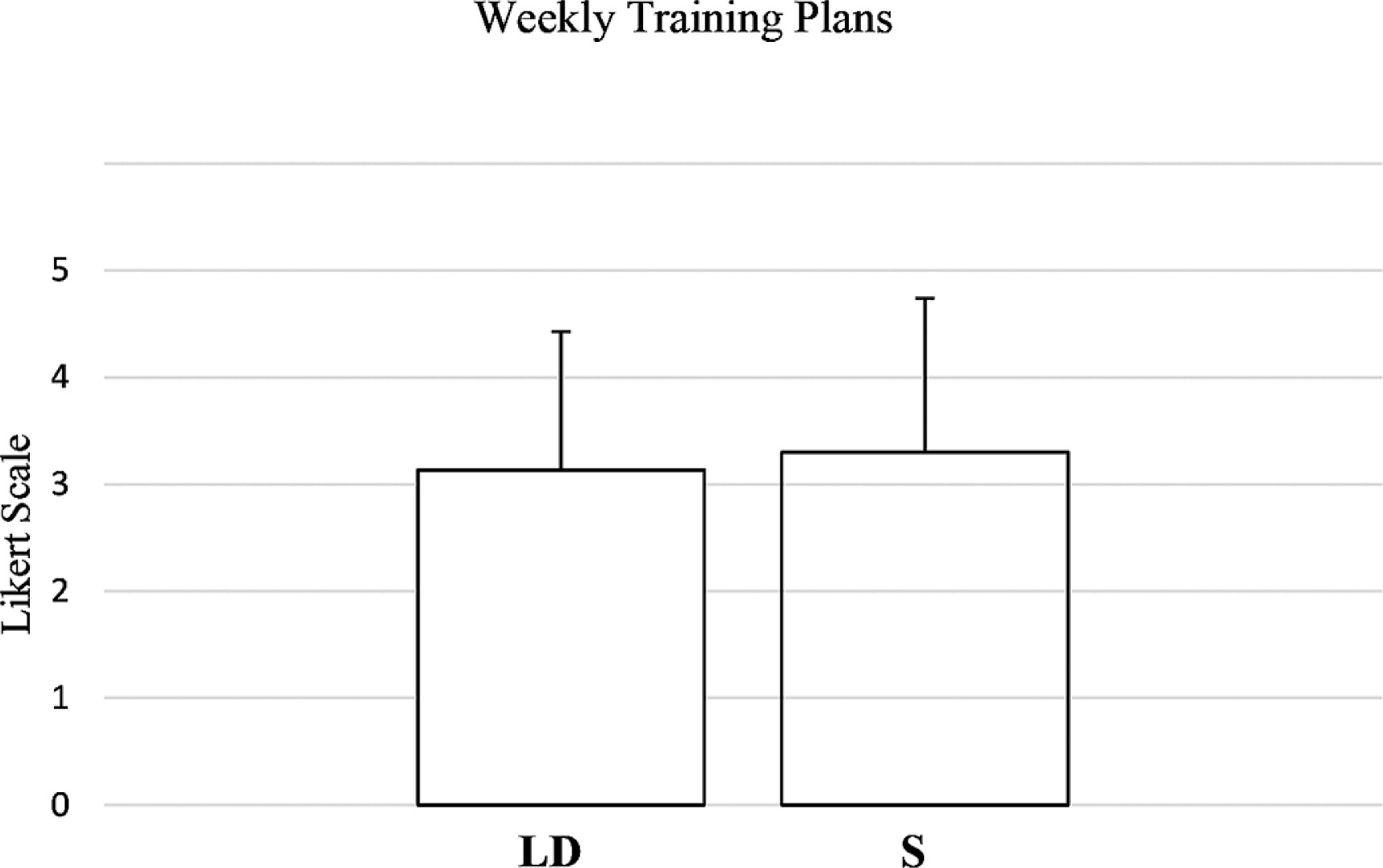 Coach and athlete evaluation of AI-generated weekly training plan for long distance (LD) and sprint athletes (S).