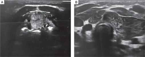 Newborn screening for congenital hypothyroidism (CH) has been highly effective in preventing serious neurodevelopmental and physical consequences in affected children. In Poland the screening procedure is based on TSH level measurement in a dried blood spot taken from a newborn in the first days of life [4]. The normal value for full-term newborns is defined as TSH < 12 mIU/l. In the case of TSH level ≥ 12 mIU/l and < 28 mIU/l the test has to be repeated according the Newborn Screening Programme for Poland 2019–2022 [4]. In the case of TSH level ≥ 28 mIU/l the neonate has to be admitted to a reference centre to confirm the diagnosis by measuring the levels of TSH and fT4 in the venous blood [4]. A similar screening model is used in many countries, but cut-off values vary with the population [3]. However, screening has some limitations. It does not allow for the differentiation of the cause of hypothyroidism. Also, some cases of ectopic thyroid can be missed in neonatal screening, giving a false negative result because it initially produces sufficient hormones, which decrease during early infancy and childhood [15]. That may lead to irreversible disorders in the development of the nervous system and to developmental delay. That is why some researchers suggest supplementary diagnostic tests, especially in doubtful cases [18, 19]. Some studies also indicate the usefulness of the assessment of the thyroglobulin level in the blood as useful information about the presence or absence of functional thyroid tissue [16]. This examination, however, is of little value in the case of ectopy of the thyroid gland with partially preserved function. Between 2002 and 2005 Iranpour et al. used scintigraphy with Tc-99m as an additional screening test for second-recalled newborns before thyroxin replacement therapy. They revealed with that additional thyroid scan that 28.4% of infants were athyreotic, 6% had ectopic thyroid, and 65.6% had a normal thyroid [17]. The study confirmed that Tc-99m TS is a useful diagnostic tool in thyroid dysgenesis. However, because it is not always possible to perform this examination, it seems justified to perform at least the US examination in doubtful cases because it is accessible and not burdensome. In congenital hypothyroidism, US examination is the primary method for distinguishing orthotopic from ectopic thyroid [18]. In approximately 20% of infants with a re-evaluated screening test, thyroid scintigraphy and/or US revealed a structural defect [19]. In any doubtful results of the neonatal screening test, or in any case of suspected congenital hypothyroidism, the diagnosis should be supplemented with non-invasive ultrasound examination of the neonate’s neck, and followed by scintigraphy if necessary.
