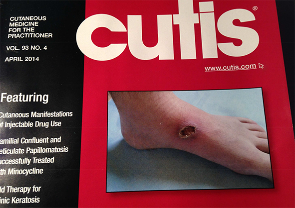 Po raz pierwszy w 70 letniej historii Gdańskiej Kliniki Dermatologicznej zdjęcie hospitalizowanego w Gdańsku pacjenta trafiło na okładkę kwietniowego wydania czasopisma CUTIS. Stało się to możliwe dzięki artykułowi ‘Cutaneous Manifestations of Injectable Drug Use: Hidden Secrets’, który zainteresował amerykańską redakcję magazynu