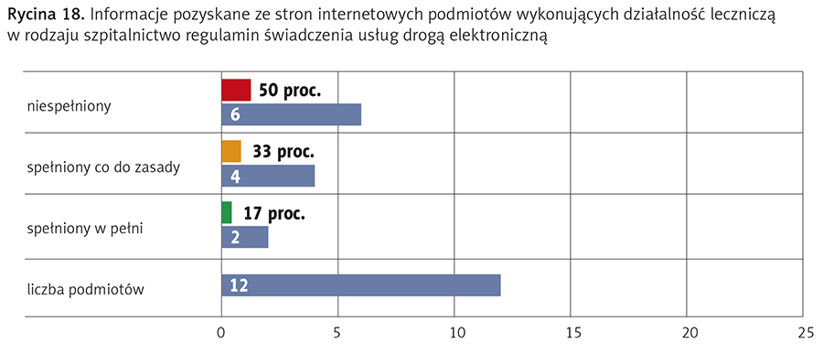Łącznie zidentyfikowano 77 podmiotów, które powinny mieć odpowiednie dokumenty dotyczące świadczenia usług drogą elektroniczną. Tylko 14 spełniało ten wymóg (ryc. 18–21).