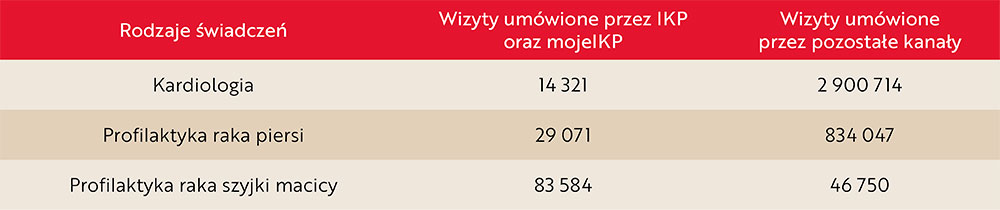 Maciejewski poinformował, że na podstawie dostępnych danych za okres od początku trwania pilotażu do 10 kwietnia 2026 r. liczba wizyt umówionych samodzielnie przez pacjentów za pośrednictwem Internetowego Konta Pacjenta oraz aplikacji mojeIKP w ogólnej liczbie wizyt umawianych w ramach świadczeń objętych centralną e-rejestracją wynosi ok. 3,3 proc.