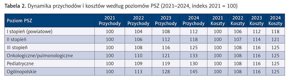 Dynamika przychodów i kosztów według poziomów PSZ