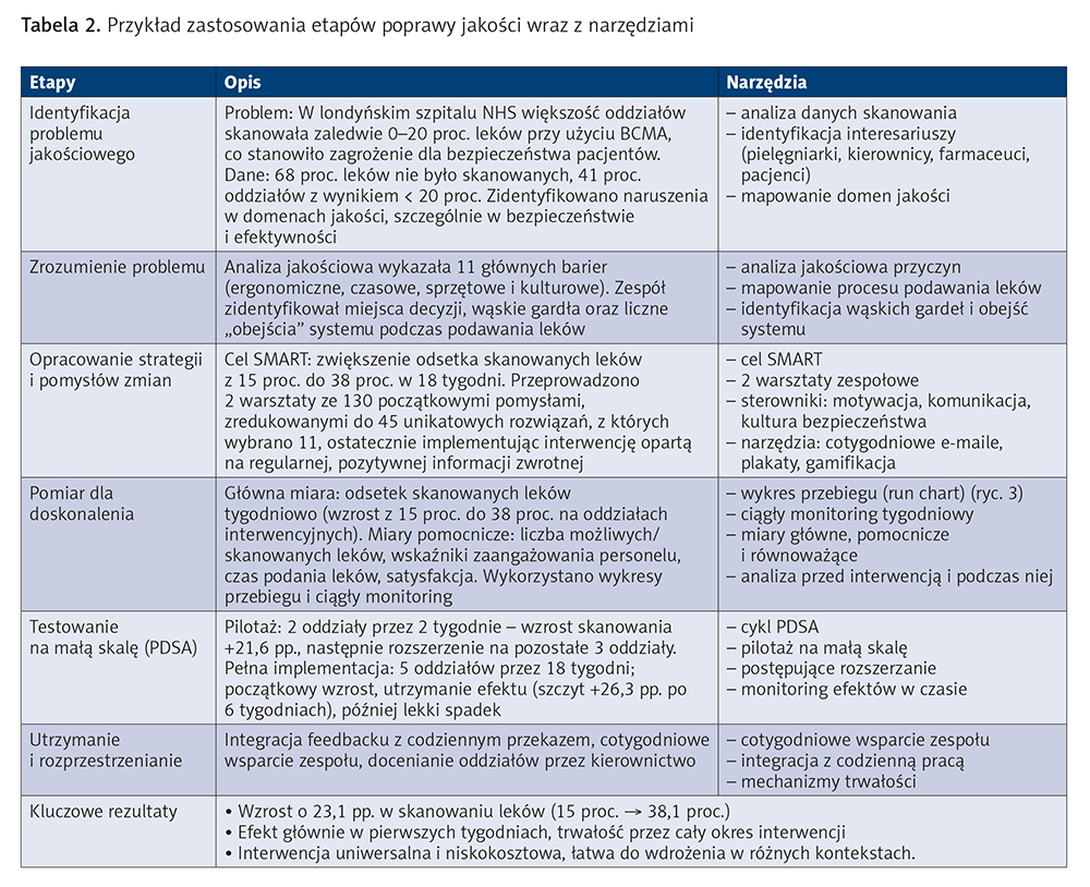 Na podstawie publikacji4 przygotowaliśmy opis problemu i działań naprawczych, wykorzystując narzędzia zalecane w przewodniku HSE. Dzięki temu możliwe było przełożenie doświadczeń autorów na ramy systemowe, które ułatwiają analizę przyczyn, planowanie interwencji, wdrożenie zmian oraz ocenę ich skuteczności.
