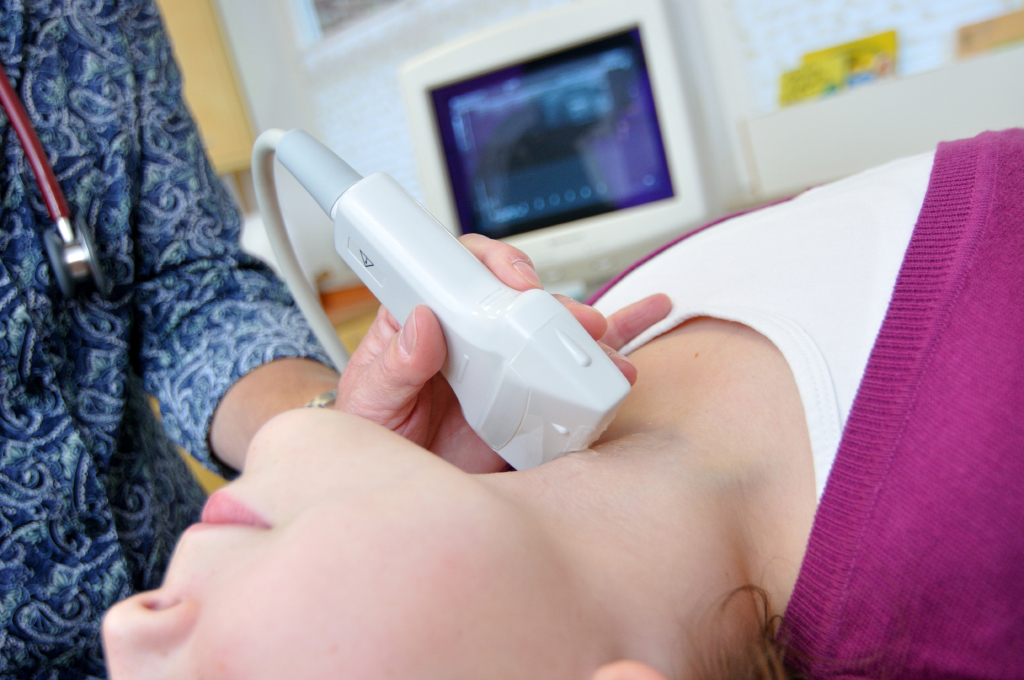 Dobrze znane badanie USG jest zwykle pierwszym obrazowym badaniem tarczycy stosowanym w sytuacjach podejrzenia problemów z tym gruczołem. Tarczyca jest umiejscowiona powierzchownie, przez co sonda urządzenia ma łatwy i niezakłócony dostęp do jej obrazowania. Podczas badania lekarz ma możliwość oceny rozmiaru, kształtu, położenia i struktury gruczołu. Obrazowanie ultrasonograficzne jest bardzo dokładnym badaniem, które pozwala na odkrycie zmian niemożliwych do wyczucia w badaniu palpacyjnym czy ukazania podczas zastosowania scyntygrafii. Chociaż USG tarczycy w przypadkach wystąpienia zmian guzowatych pozwala na ocenę ich morfologii i zróżnicowania charakteru, to badanie nie pozwala na jednoznaczne określenie czy mamy do czynienia z guzem złośliwym.