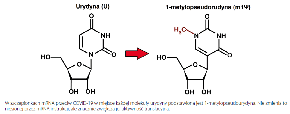W 2005 r. Kariko i Weissman rozwiązali ten ostatni problem. Zamienili jedną z czterech cegiełek mRNA – nukleozyd urydynę, na jej analog – 1-metylopseudourydynę, która naturalnie występuje w transportujących RNA (tRNA). Dzięki temu zabiegowi znacząco zmniejszył się stan zapalny będący wynikiem wykrywania obcego RNA przez receptory Toll-podobne. W rezultacie istotnie zwiększyła się wydajność translacyjna mRNA – komórka produkowała więcej pożądanego białka. A to przecież bardzo istotne, jeżeli celem podania mRNA miałoby być wywołanie swoistej odpowiedzi humoralnej i komórkowej. Kariko i Weissman opublikowali swoje obserwacje na łamach czasopisma „Immunity” w 2005 r. i następnie opatentowali jako wynalazek. BioNTech i Moderna nawet jeszcze wtedy nie istniały.