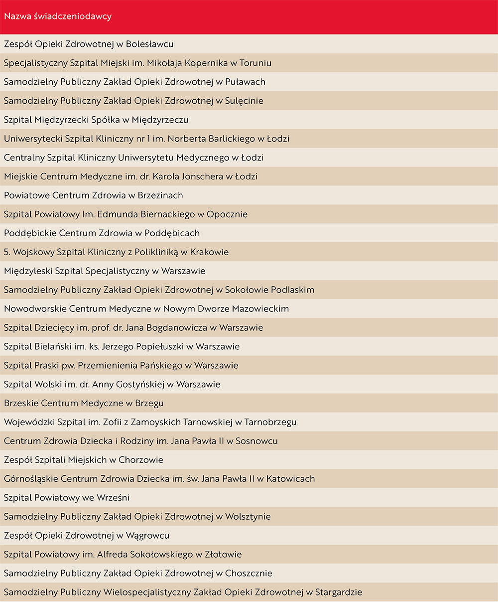 • „Menedżer Zdrowia” publikuje listę szpitali