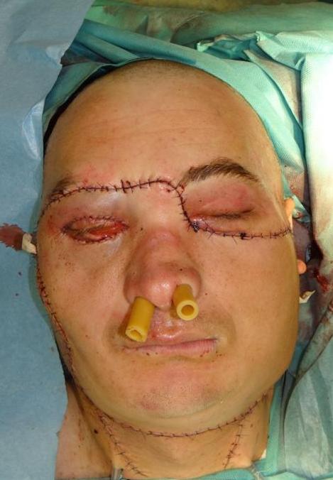Operowanym był Richard Lee Norris, który miał całkowicie zdeformowaną twarz po tym, gdy w 1997 r. został przypadkowo postrzelony. Stracił wtedy usta, zęby i nos. Przeszedł kilka operacji zarówno plastycznych, jak i ratujących życie, ale nie udało się choćby częściowo zrekonstruować jego twarzy.