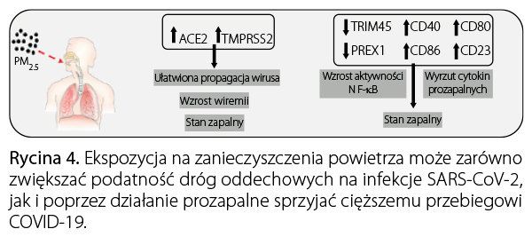 Związki pomiędzy zapadalnością na wybrane choroby zakaźne dróg oddechowych, np. związane z infekcjami wirusem RS czy rinowirusami, były przedmiotem analiz epidemiologicznych jeszcze przed pandemią COVID-19. Inspiracją dla nich był dowiedziony eksperymentalnie szkodliwy wpływ zarówno gazowych, jak i pyłowych komponentów zanieczyszczenia powietrza na działanie układu oddechowego i odporności. Z jednej strony powodują one uszkodzenia tkanki nabłonkowej, a z drugiej mogą modyfikować funkcje komórek immunologicznych, takich jak makrofagi, neutrofile, limfocyty i komórki dendrytyczne, a także sprzyjać zjawisku stresu oksydacyjnego oraz aktywować kaskadę prozapalną, chociażby poprzez indukcję jądrowego czynnika transkrypcyjnego NF-κB i stymulowanie uwalniania cytokin prozapalnych. W ten sposób zanieczyszczenia powietrza mogą nie tylko zwiększać podatność na infekcje układu oddechowego, ale też sprzyjać cięższemu ich przebiegowi na skutek nadmiernego pobudzenia nieswoistej odpowiedzi immunologicznej.
