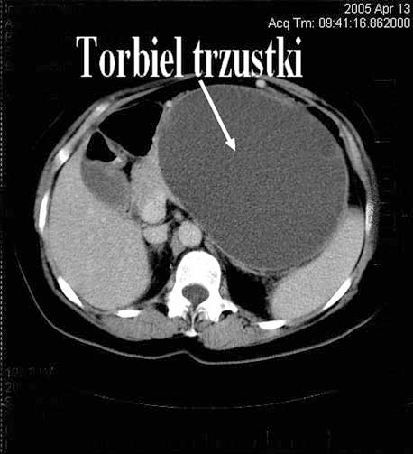 W pracy opisano przypadek 48-letniej chorej z olbrzymią zropiałą torbielą trzustki, u której po 4 latach stwierdzono cechy złośliwego procesu nowotworowego.