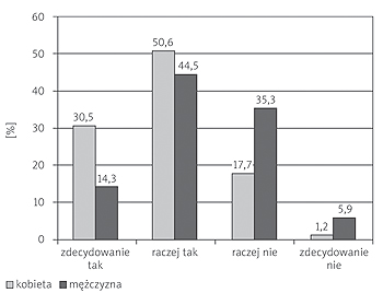 Cel pracy : Celem pracy była ocena poziomu lęku i natężenia dolegliwości bólowych podczas profilaktycznej endoskopii jelita grubego. Wnioski : Kobiety w większym stopniu niż mężczyźni odczuwały dolegliwości bólowe i lęk w trakcie badania. Do najczęściej zgłaszanych dolegliwości należały wzdęcie brzucha, dyskomfort oraz miejscowy ból brzucha. Średnia ocena nasilenia bólu wg skali NRS w ocenie badanych wynosiła 4,5 pkt, można zatem założyć, że badanie jest umiarkowanie bolesne. Wyraźnie wyższy poziom lęku reprezentowali mieszkańcy wsi niż mieszkańcy miast. Wysoki poziom lęku warunkuje subiektywne nasilenie dolegliwości bólowych. Osoby z wykształceniem wyższym wyraźnie reprezentowały niższy poziom lęku jako stanu.