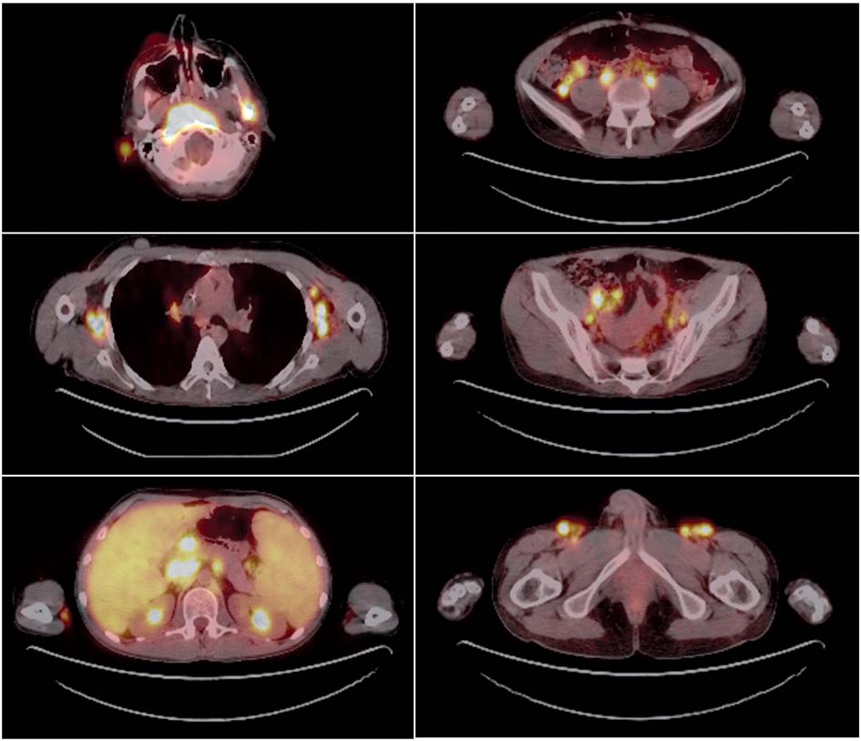 W pracy przedstawiono opis przypadku pacjenta z oporną i nawrotową chorobą Hodgkina, u którego przeprowadzono allo-HSCT. W 90. dobie po transplantacji doszło do rozwoju PTLD, potwierdzonego badaniem histologicznym, metodą reakcji łańcuchowej polimerazy (polymerase chain reaction – PCR) (EBV-DNA-emia) oraz badaniem pozytronowej tomografii emisyjnej (CT-PET). U pacjenta zastosowano redukcję immunosupresji (RI) oraz 8 cykli rituksymabu, uzyskując całkowitą remisję. Monitorowanie leczenia prowadzono, oznaczając EBV-DNA-emię oraz wykonując badania CT-PET.