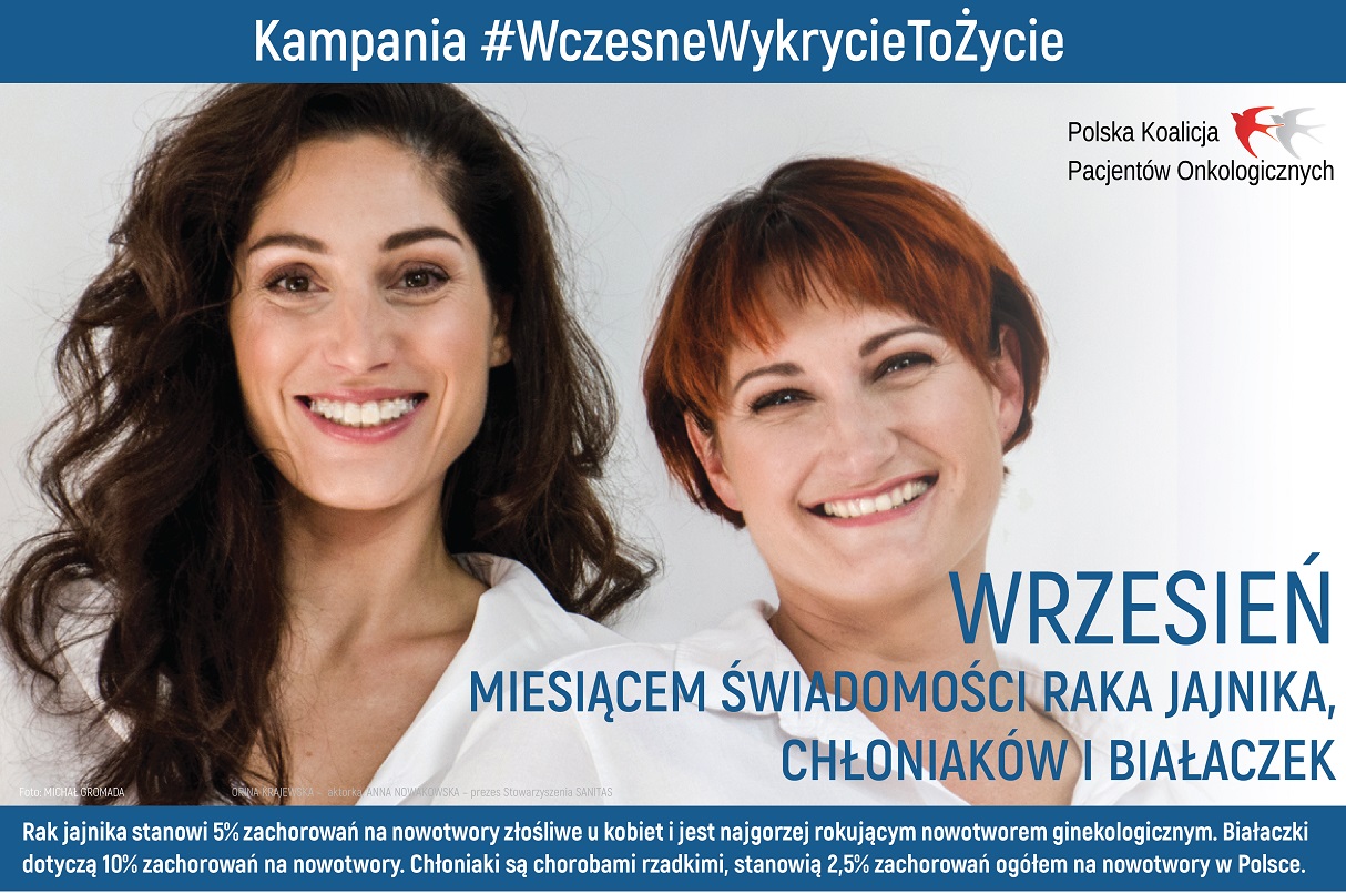 We wrześniowej odsłonie Ogólnopolskiej Kampanii #WczesneWykrycieToŻycie 45 organizacji pacjentów tworzących Polską Koalicję Pacjentów Onkologicznych oraz znane publicznie osoby przypominają o profilaktyce raka jajnika oraz nowotworów onkohematologicznych – chłoniaków i białaczek.