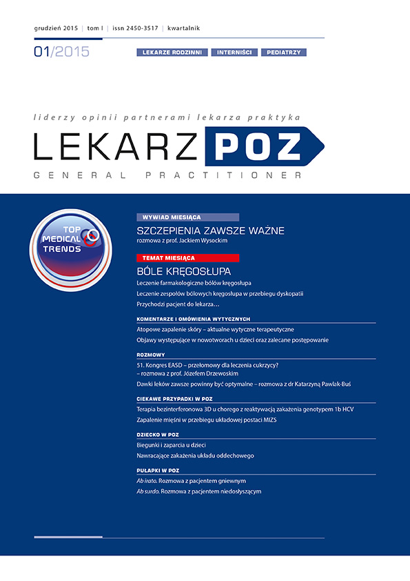 W pierwszym numerze czasopisma w szczególności polecamy wywiad z prof. Jackiem Wysockim "Szczepienia zawsze ważne", blok tematyczny poświęcony bólom kręgosłupa, a także cykle "Ciekawe przypadki w POZ" oraz "Pułapki w POZ". Życzy państwu pożytecznej lektury.