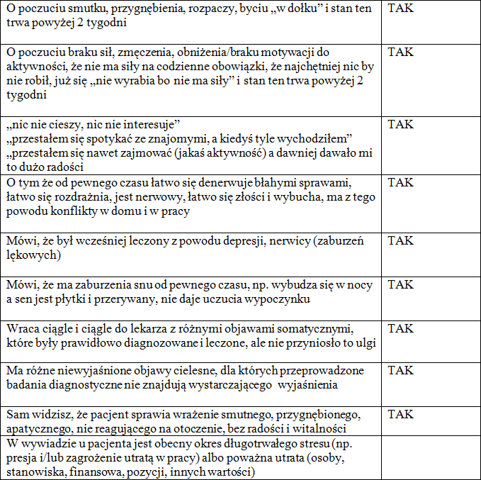 Po uzyskaniu tych informacji możemy zapytać o objawy zespołu depresyjnego.