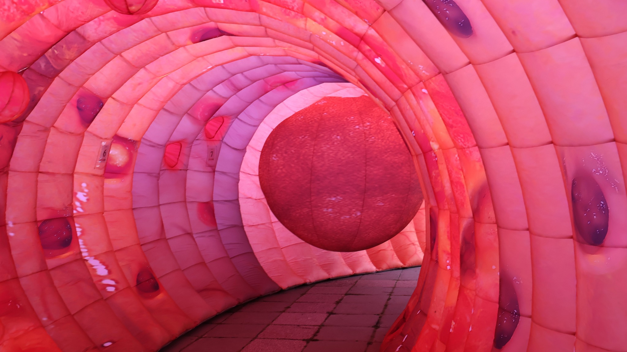 Prof. Tomasz Banasiewicz zachęca poznaniaków do obejrzenia mobilnej instalacji jelita 3D