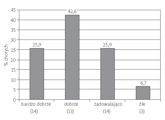 Materiał i metody: Do badania ankietowego zakwalifikowano 100 chorych z rozpoznaniem RZS, hospitalizowanych w Klinice Reumoortopedii Instytutu Reumatologii im. prof. Eleonory Reicher w Warszawie w latach 1989–2003, u których implantowano endoprotezy stawów biodrowych i kolanowych. W badaniu wykorzystano kwestionariusz autorski oraz kwestionariusz HAQ-DI. Oceniono 57 chorych, w tym 48 kobiet i 9 mężczyzn, którym wszczepiono jedną lub dwie endoprotezy stawów biodrowych (TPB) i/lub jedną bądź dwie endoprotezy stawów kolanowych (TPK).
